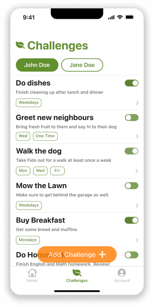 They can assign custom challenges, such as helping with household chores or reading a chapter in a book to reward them after.
