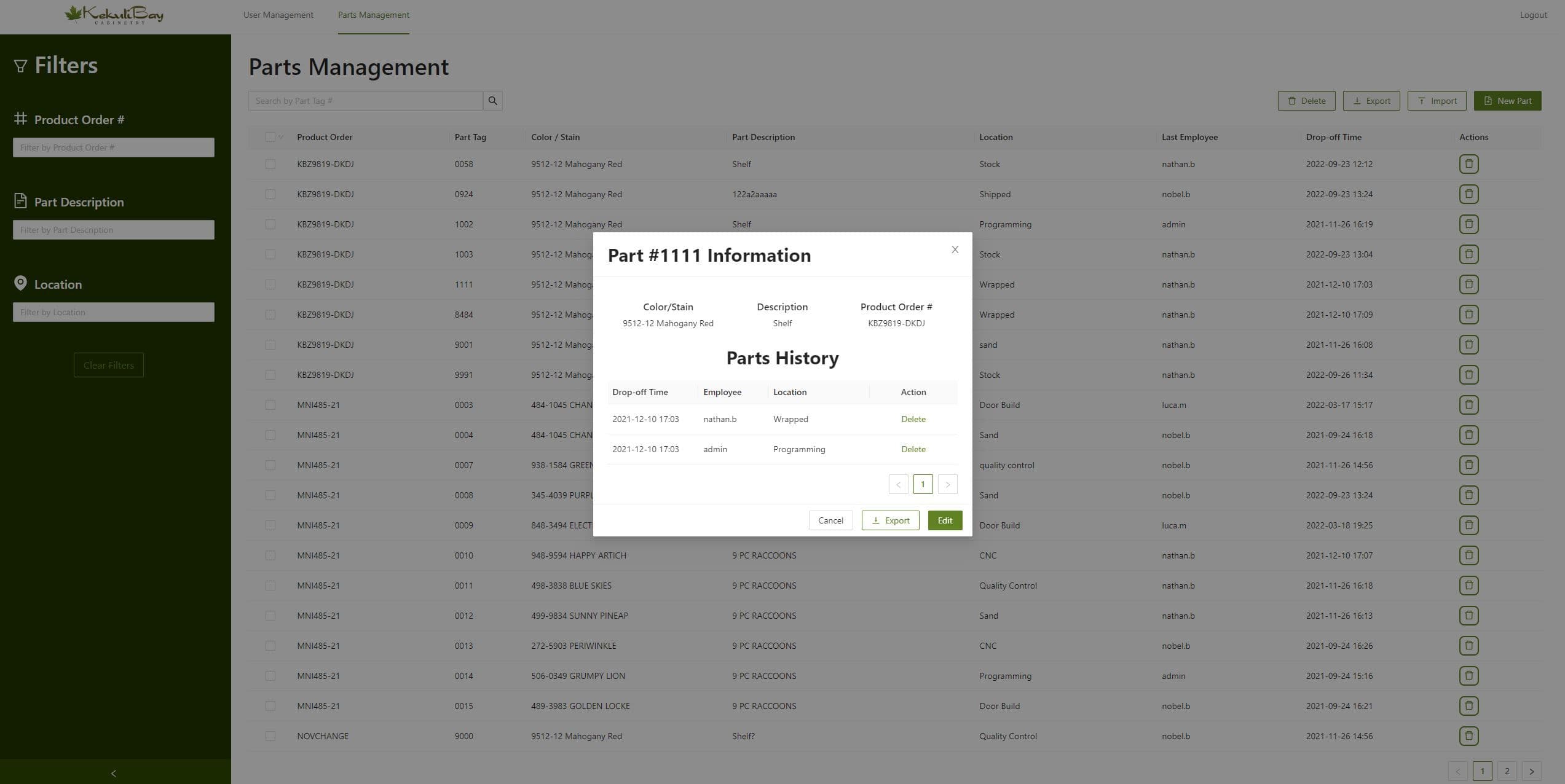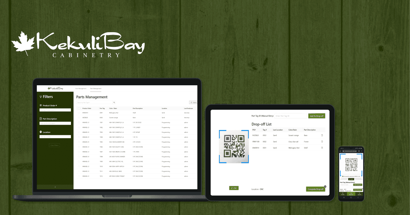 Kekuli Bay Cabinetry, one of the largest Canadian cabinet manufacturers in British Columbia, needed a digital solution for managing the information of cabinetry parts. There are many off-the-shelf technologies available in the market to support this need. However, these systems are often bloated with unnecessary features, and are not a cost-effective solution in the long term.