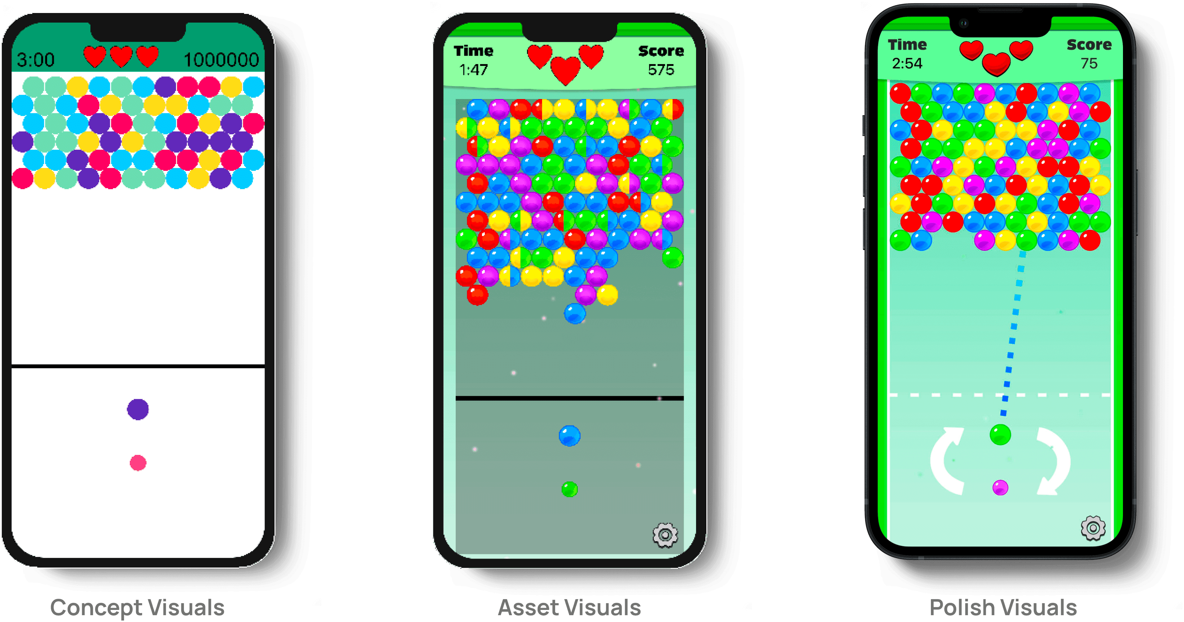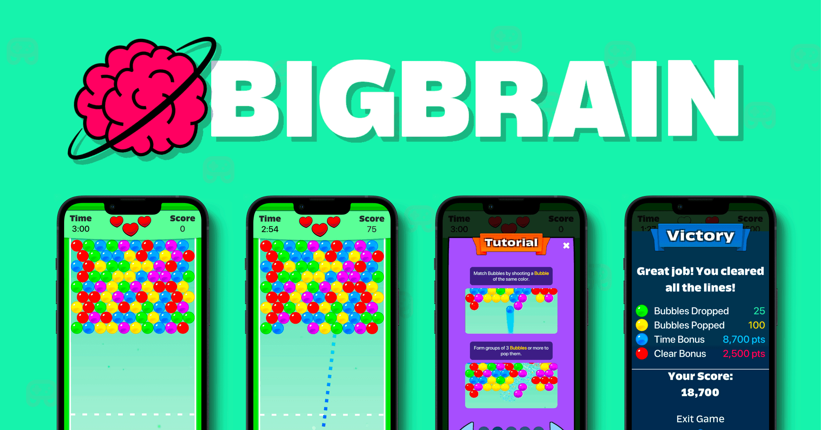 Throughout this polishing phase we also landed on a visual style we wanted to portray in all future games, making sure that it adhered to BigBrain Game's own branding as well as using the psychology of colour to further entice players of the games to achieve more.